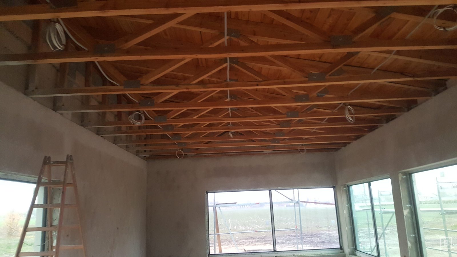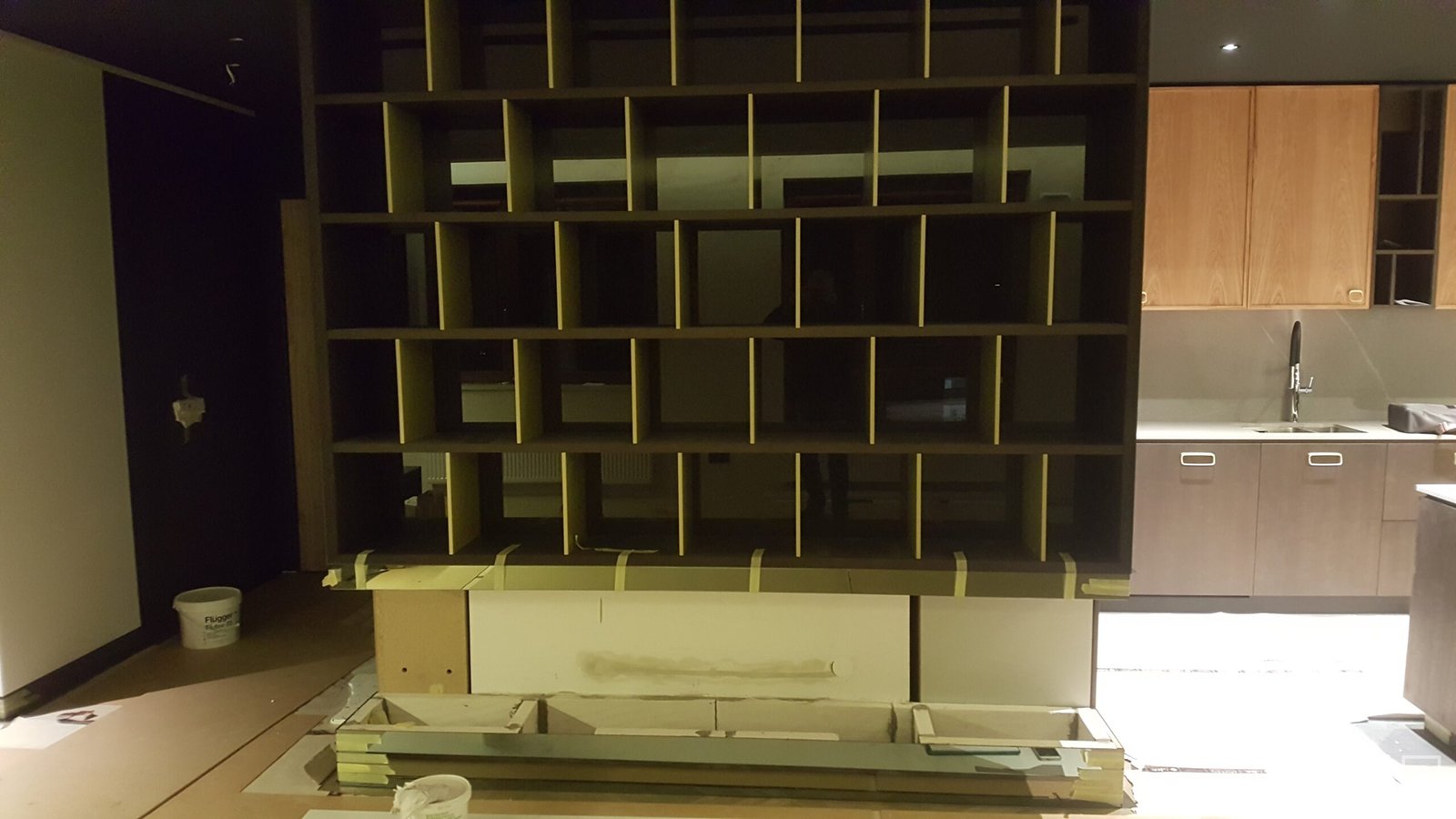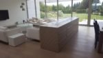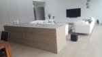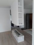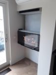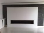 Zabudowa o szerokości 1300 mm składa się z wkładu biokominkowego wraz z palnikiem artflame 1000. Zewnętrzna część została wykonana z płyty izolacyjnej na którą ostatecznie został nałożony stiuk. Całość wraz ze szczegółowym projektem została wykonana przez zespół biopasja.