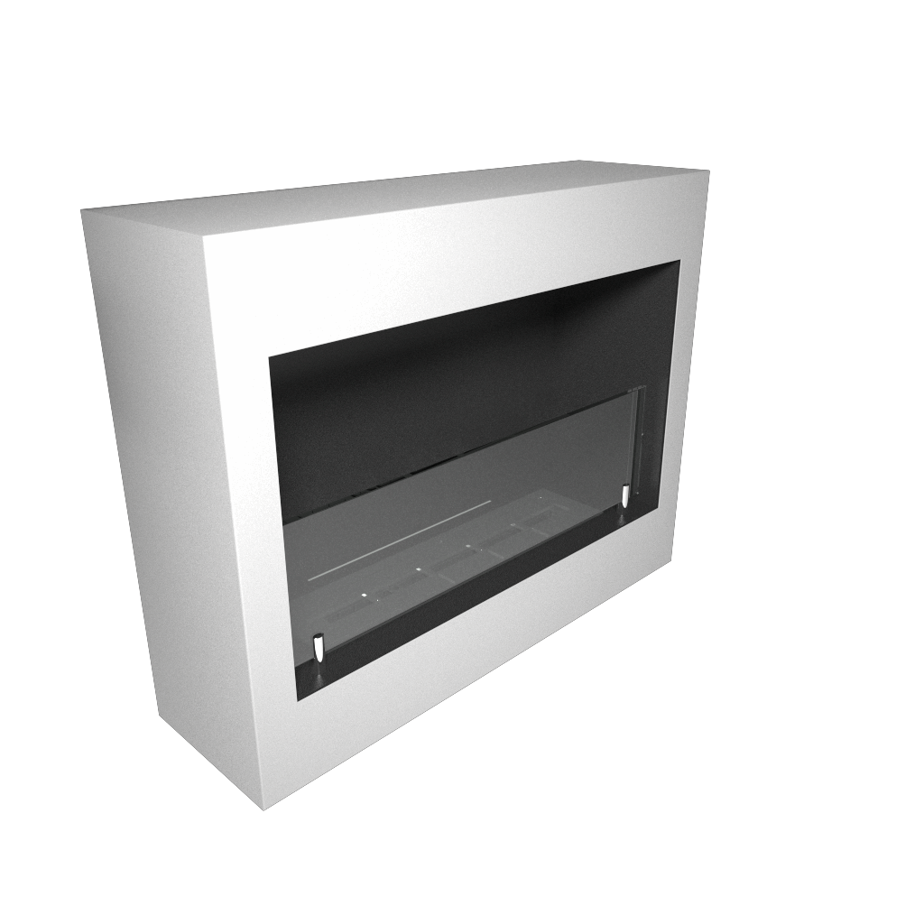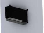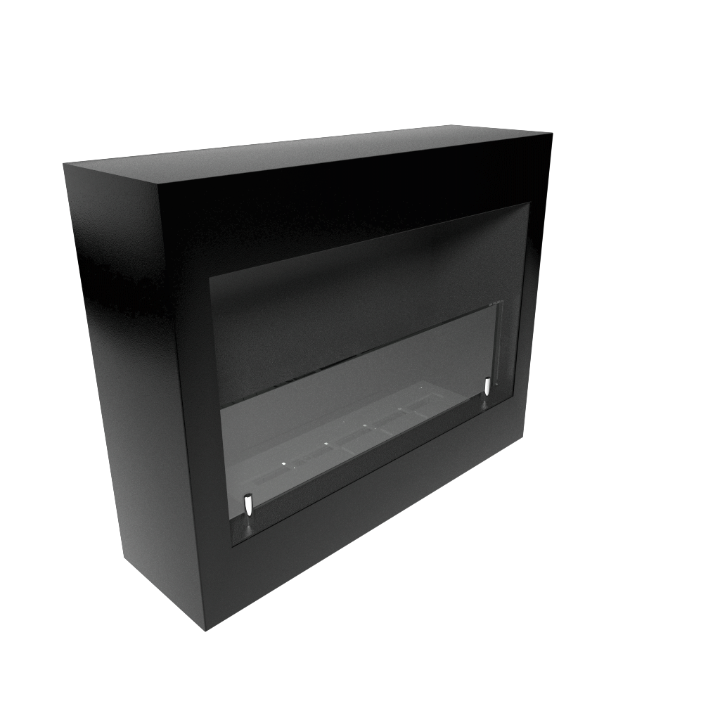 Biokominek wiszący o prostym i nowoczesnym wyglądzie. Główną zaletą urządzenia jest wentylowana tylna płyta oraz wymienna obudowa zewnętrzna, która posiada bardzo łatwy system demontażu umożliwiający jej wymianę na inny kolor. Konstrukcja urządzenia wykonana jest z aluminium gr 6 mm w kolorze czarny mat, w zestawie palnik ARTFLAME oraz hartowany ekran szklany Opti Withe gr 10 mm na wysokość 120 mm osadzony na uchwytach luźnych Easy. W opcji możliwa jest zmiana koloru zewnętrznej obudowy według palety ral Istnieje również możliwość zmiany uchwytów szyby oraz wymiarów. Dostępne jest również wyłożenie elementów pionowych czarnym szkłem -