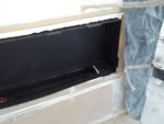 Biokominek wykonany według projektu inwestora. Zabudowa wykonana z płyty meblowej, wraz z izolacją i wkładem skrzyniowym z aluminium gr 5 mm oraz szybą stabilizująca płomień OptiWithe gr 10 mm. Zawiasy ruchome umożliwiające łatwy dostęp do obsługi palnika artflame 1000