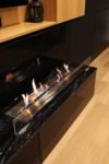 Biokominek wykonany na indywidualne zamówienie. Palnik artflame 1000 wykończony ramką z czarnego polerowanego granitu Nero Zimbabwe gr 20 mm