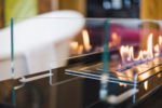 Szklany biokominek w elewacji meblowej
