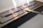 Biokominek nowoczesny zaprojektowany według indywidualnego projektu przez dział projektowy biopasja. Wkład kominka wykonany z aluminium, ramka wykończeniowa wraz z palnikiem biokominkowym artflame ze stali nierdzewnej. Palnik biokominkowy artflame z regulacją wysokości płomienia umieszczony w dolnej części komory.