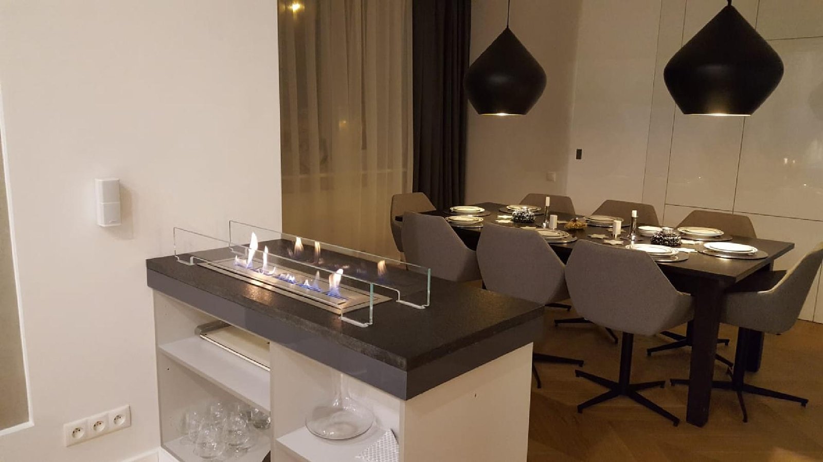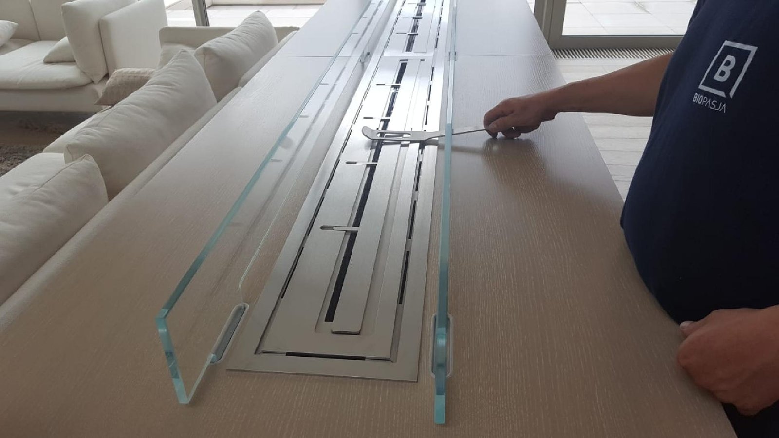 Nowo ukończony projekt biopalenisko w jednej lini ognia 2400mm, osadzone w szafce meblowej. Całość zabezpieczona szybami optiwhite gr.10mm osadzonych na nowo OPATENTOWANYCH uchwytach magnetycznych do szyby, concealed latches NEO PRO. Przekonaj się że stawiasz na indywidualność i jakość nie pomijając bezpieczeństwa. Twój biokominek nasza pasja. Biopasja. Bardzo mile zapraszamy -