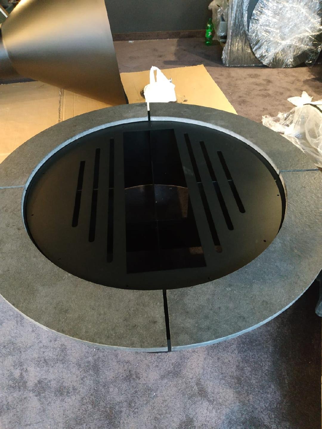 Biokominek wykonany na indywidualne zamówienie. Palnik artflame 1000 wykończony ramką z czarnego polerowanego granitu Nero Zimbabwe gr 20 mm