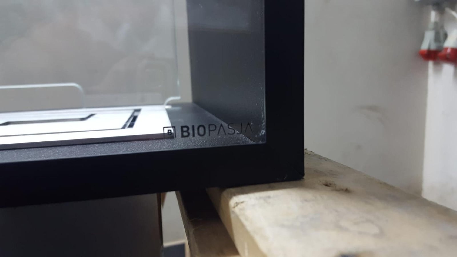 Biokominek z szybą ekranową, zamocowaną na nowo zaprojektowanych uchwytach łamanych. Udostępnia łatwy dostęp do biopalnika jak i zabezpiecza przed bezpośrednim kontaktem. z ogniem podczas eksploatacji. Zaprezentowany biokominek, można udostępnić w każdej konfiguracji i opcji. Zapraszamy zespół Biopasja. -