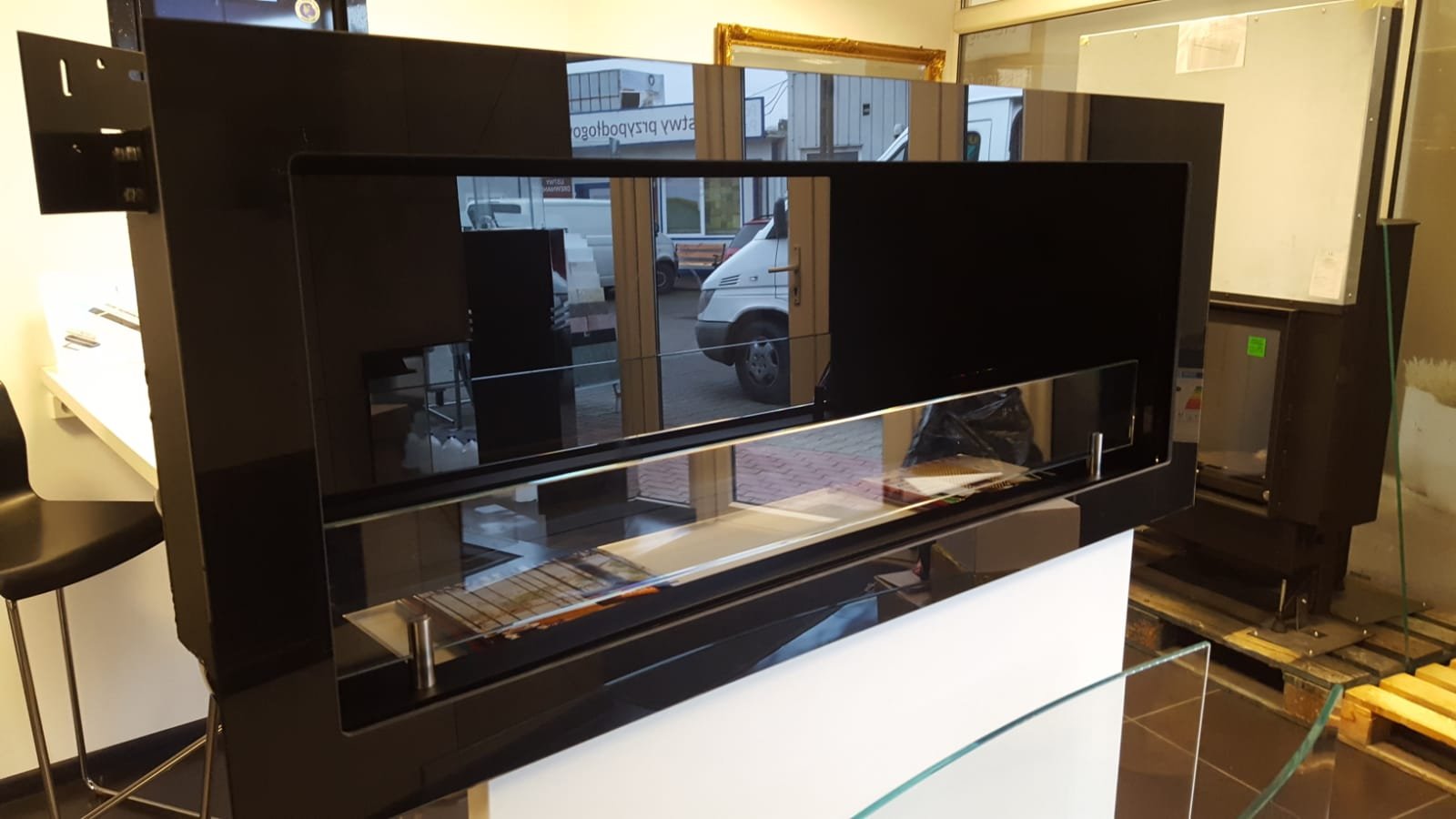 Biokominek, wkład szklany z szklaną ramką elewacyjną