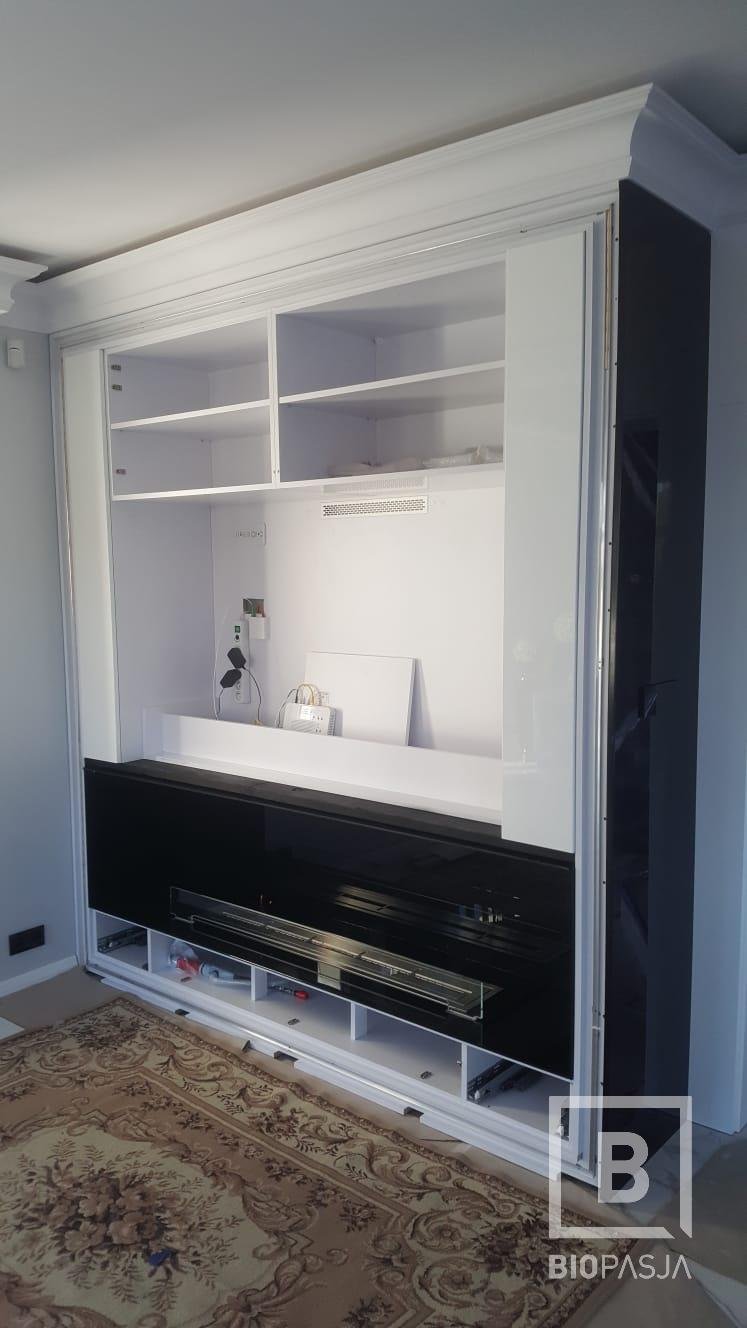 Biokominek w zabudowie z TV