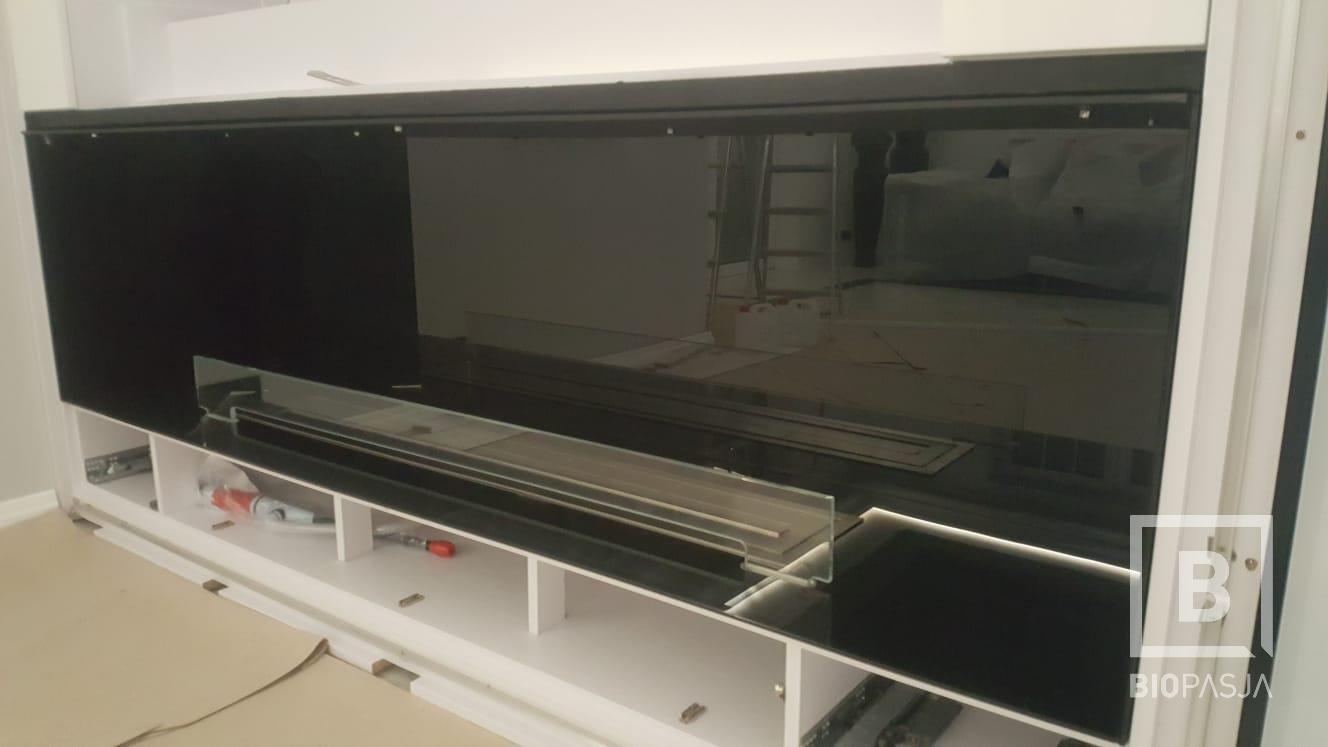 Szklany wkład biokominkowy 2100mm w elewacji meblowej