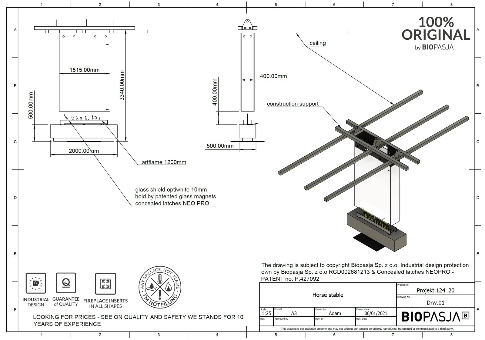 Nowo ukończona realizacja na wymiar, sam wkład wykonany z szkła piecowo malowanego, z ramką wykończeniową w szkle. Rama z systemem lekkiej obsługi, nie potrzeba żadnych narzędzi do osadzenia czy ściągnięcia. Bardzo dziękujemy za projekt. Zespół Biopasja -